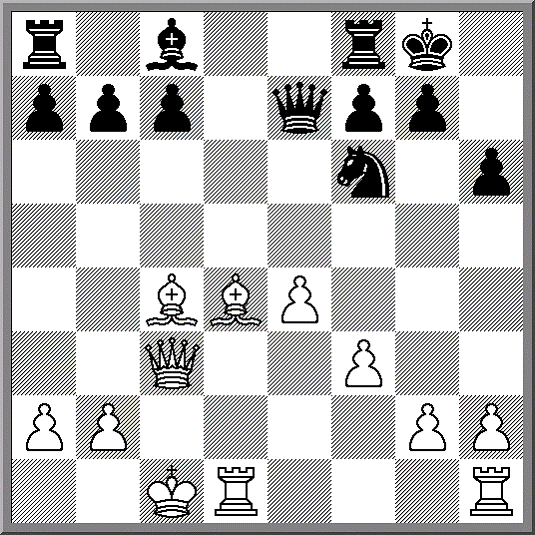 En dan Douwe aan het 8e bord. In het eerste diagram waar wit al zeer goed staat kan hij Lc5 spelen met kwaliteitswinst omdat Dxc5 faalt op Lxf7+. Wit bleef toch positioneel goed staan maar bedierf zijn stelling met een aantal opportunistische zetten.