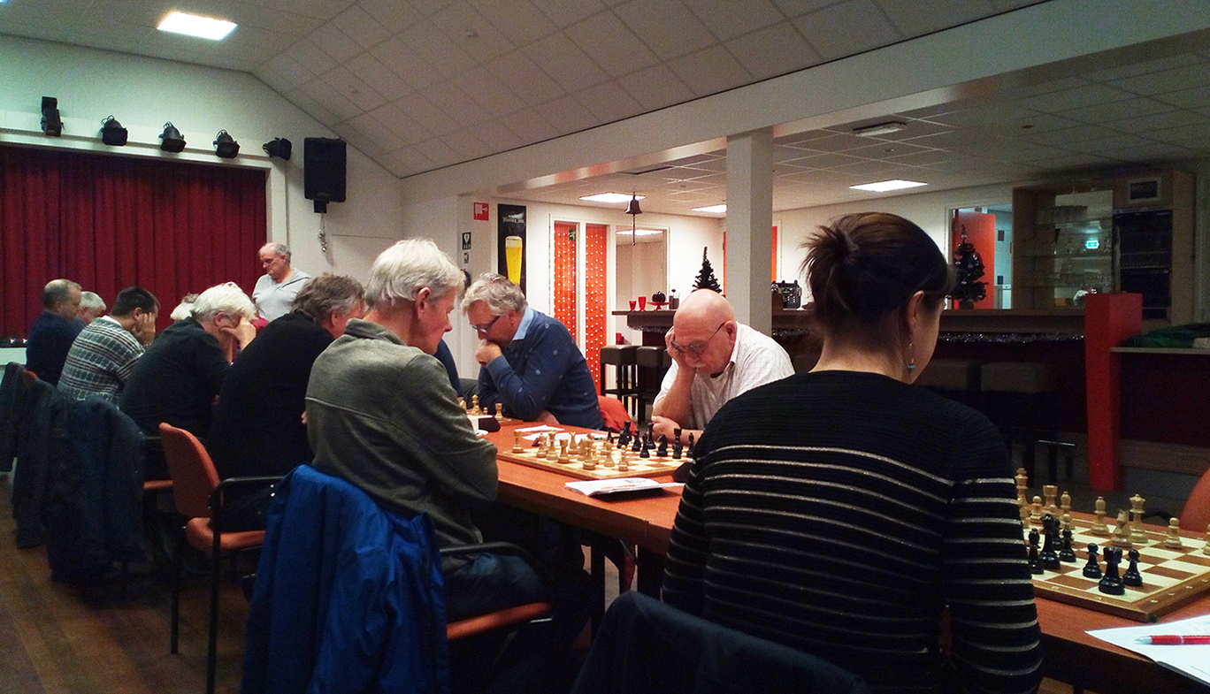 Je hoopt dan dat je nog een remise uit het vuur kunt slepen als alles meezit. Maar deze avond zat werkelijk alles tegen. Beginnend met een wegafsluiting, gevolgd door een verandering van speelzaal en eindigend met bevroren autoruiten. En tussendoor werd er ook nog geschaakt. Nou ja, een poging gedaan.